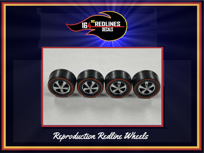 Hi quality reproduction replacement wheels for 1968-1974 Redline Hot Wheels. We have large varity of sizes and style types to replace those old scuffed and scratch wheels to give your Hot Wheel the fresh new look again.