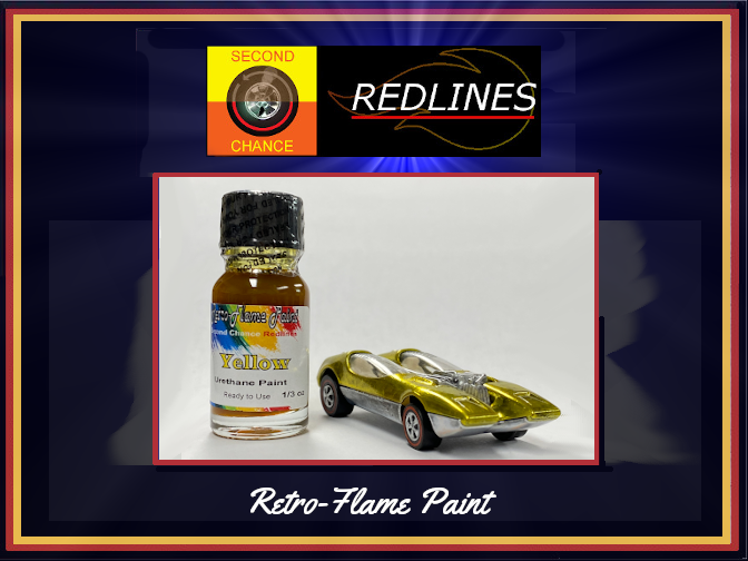 A 1/3 oz. bottle of our Specially Formulated Redline Restoration Paint. Take your Customs and Restoration projects to the next level with our Retro-Flame paint line. We custom color-match our paints to the original Redline colors, and the results are stunning! Depending on your spray rig, number of coats and your airbrush attack, this bottle can cover between 2 and 6 cars.