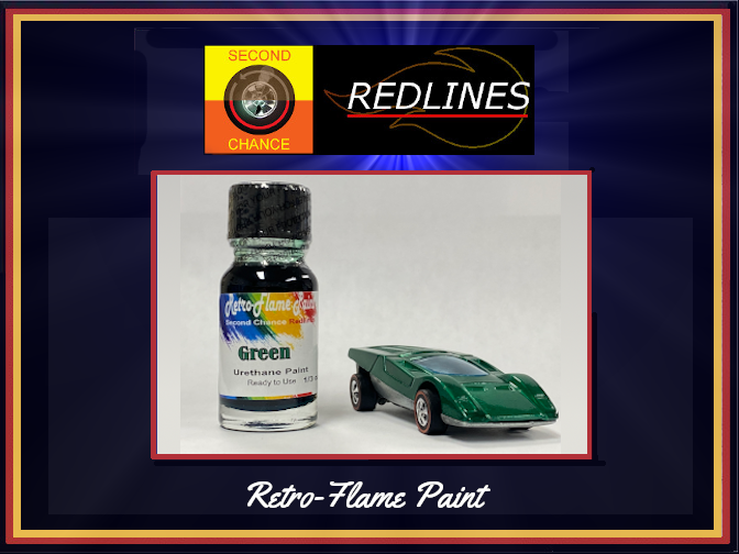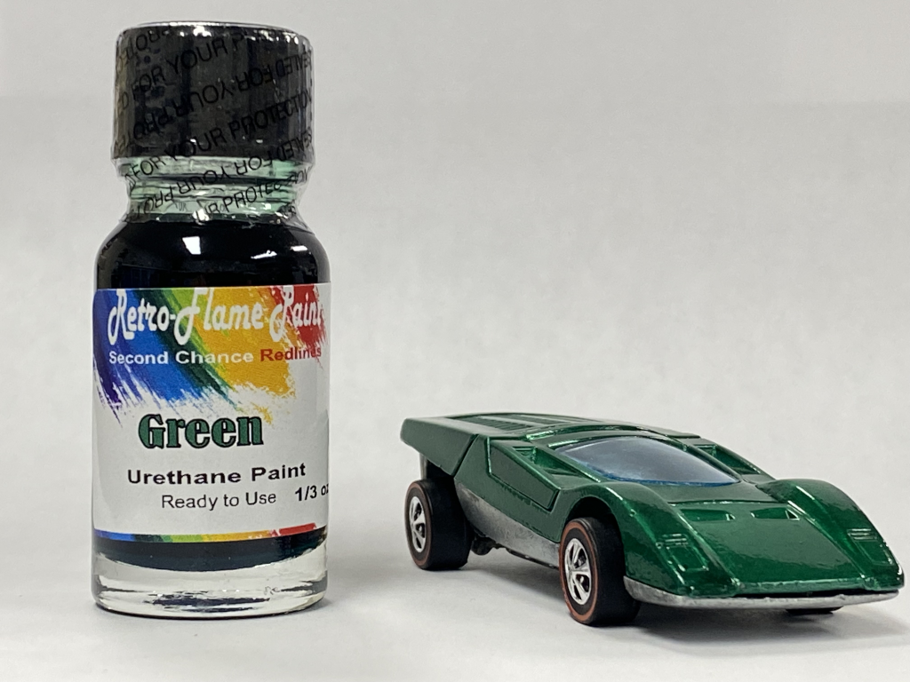 A 1/3 oz. bottle of our Specially Formulated Redline Restoration Paint. Take your Customs and Restoration projects to the next level with our Retro-Flame paint line. We custom color-match our paints to the original Redline colors, and the results are stunning! Depending on your spray rig, number of coats and your airbrush attack, this bottle can cover between 2 and 6 cars.