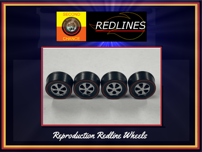 Hi quality reproduction replacement wheels for 1968-1974 Redline Hot Wheels. We have large varity of sizes and style types to replace those old scuffed and scratch wheels to give your Hot Wheel the fresh new look again.